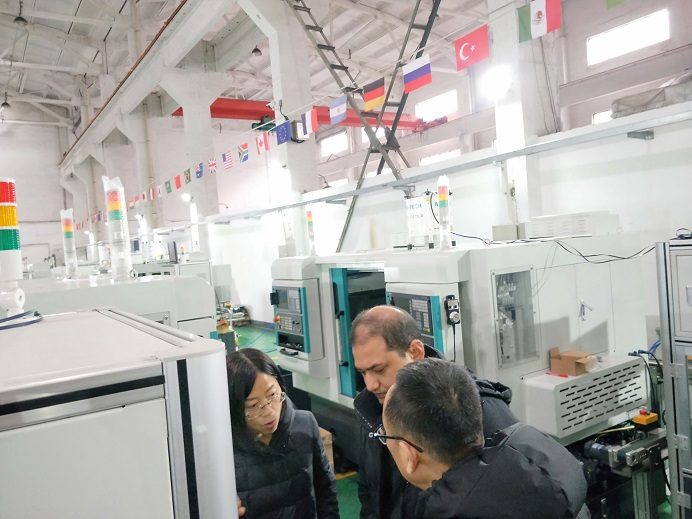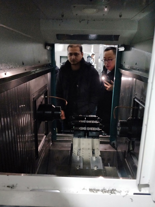 2019新年伊始我們迎來了第一位國外客戶,該印度客戶是一家當地知名企業,他們的產品大部分出口到德國,美國等工業強國,對車床精度要求高。目前該客戶加工節拍很慢,每一分鐘生產一個零件,現場驗收的數控車床自動生產線每18秒生產一個零件,效率提高了3倍多。